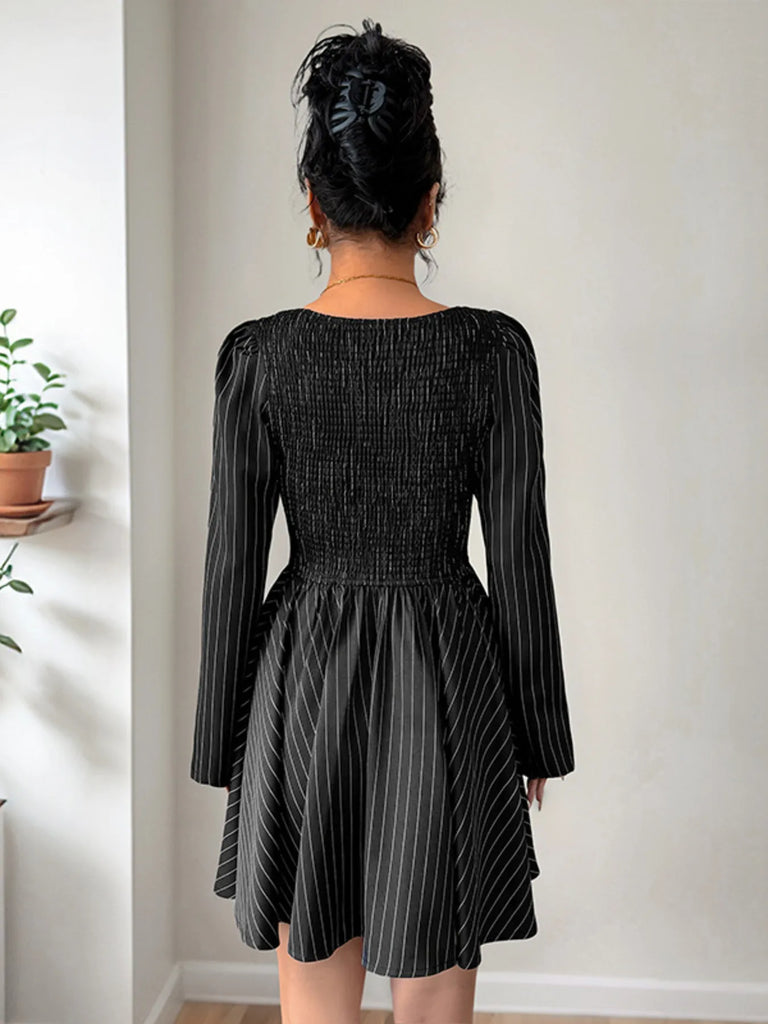 Elevate your wardrobe with this striking mini dress, designed with a smocked sweetheart empire bust in contrasting fabric that creates a flattering silhouette. The long bell sleeves add romantic movement and dimension, making this piece versatile enough for both casual outings and elevated occasions. The thoughtful construction balances structure with fluidity, ensuring comfort without compromising on style. Perfect for those seeking a dress that combines contemporary design with timeless appeal.